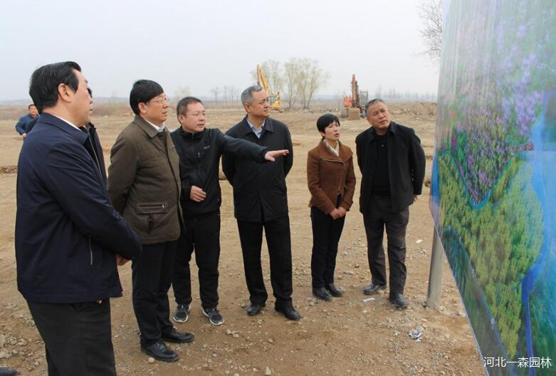 河北省林業(yè)廳廳長周金中同志在石家莊市林業(yè)局局長楊建秋、元氏縣委書記鄭巍、一森園林董事長耿軍林的陪同下到萬花山森林公園一森園林植樹造林基地視察指導(dǎo)工作。